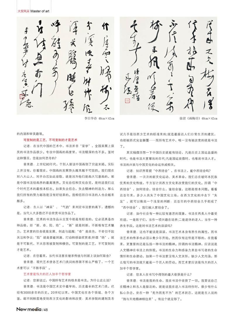 书法专刊48,此作品作者为《新媒体》杂志第三期